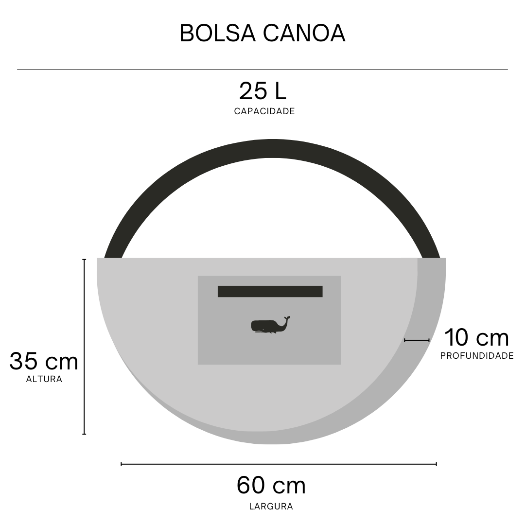 A Bolsa Canoa Atero é feita em nylon sustentável impermeável, possui forro e conta com bolso interno e externo com zíper para garantir organização, além de alça ajustável para mais praticidade.